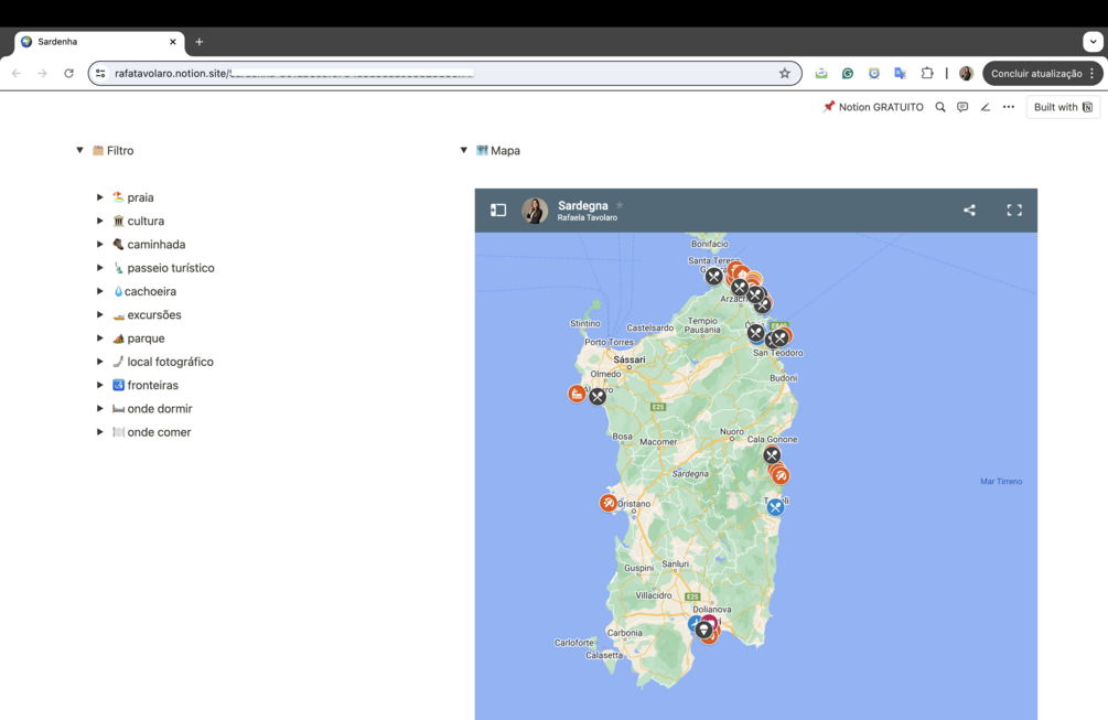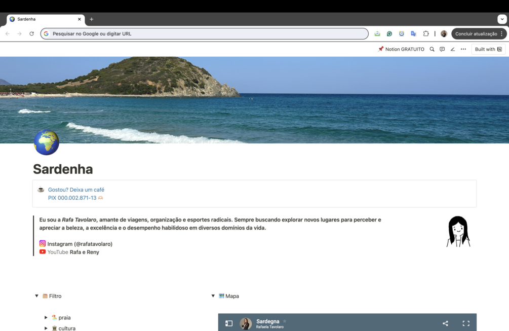Com esse guia, você precisará apenas se preocupar com a passagem de ida e volta. Este guia criado no Notion serve como um mapa centralizado, reunindo todos os pontos, dicas e indicações pessoais e essenciais de que você precisa para agilizar sua viagem e criar uma experiência perfeita para você e com quem for sua companhia (se for o caso).